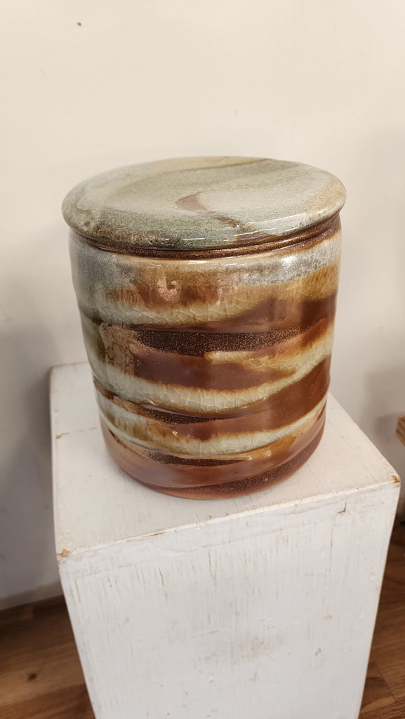 Anagama wood-fired lidded jar
